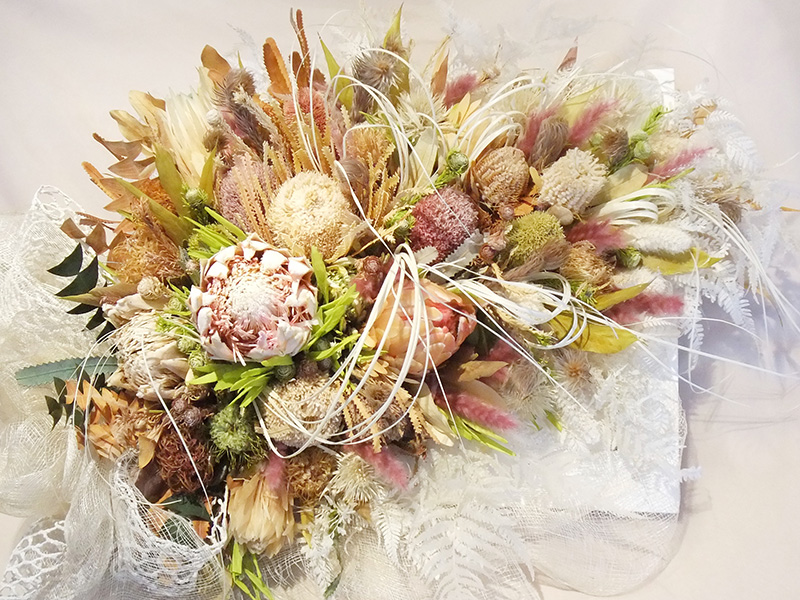 これまでは花の特性によってバラバラ・ボロボロの仕上がりに困りましたが、デリケートな花や薔薇でも散らない花の加工が実現しました。